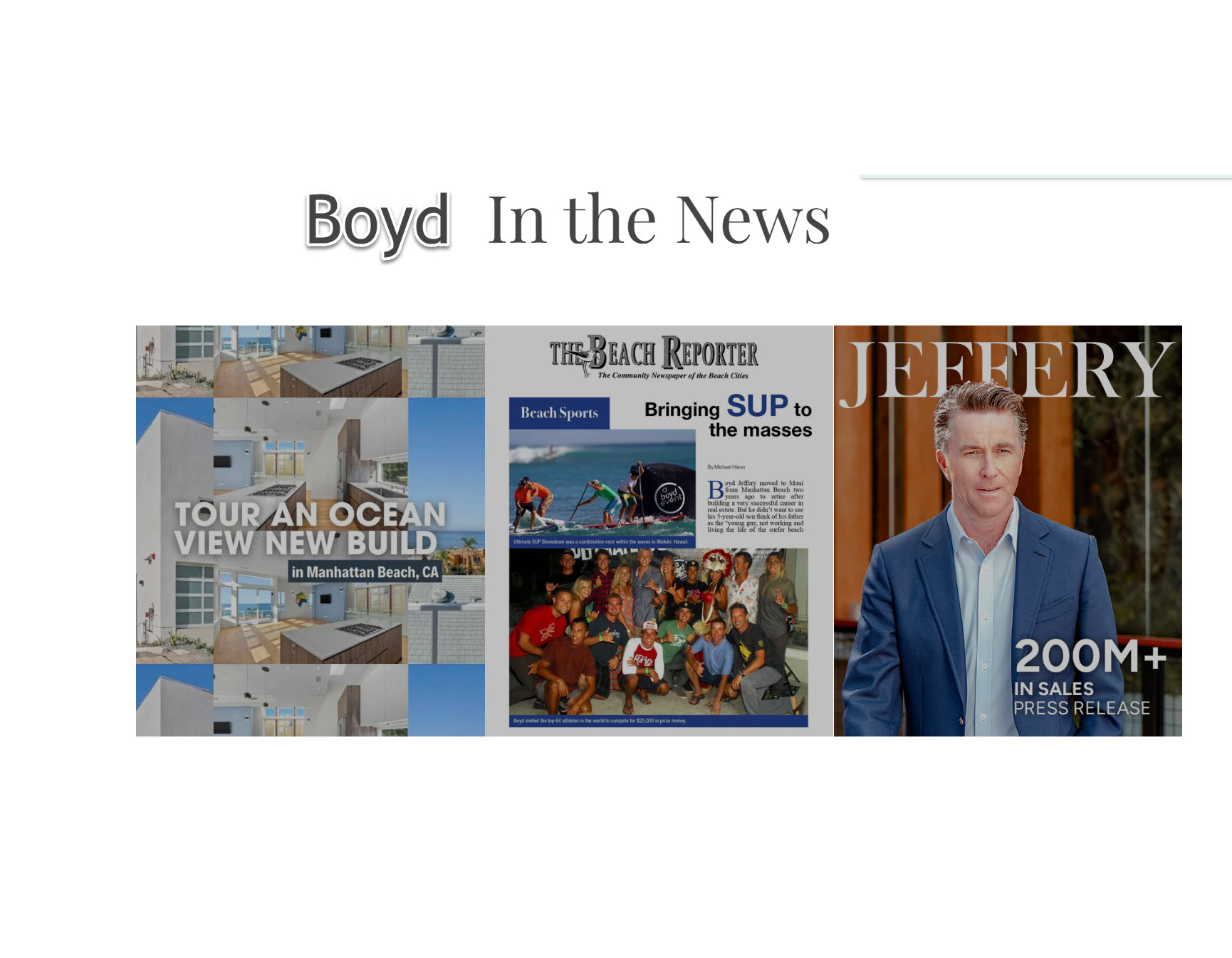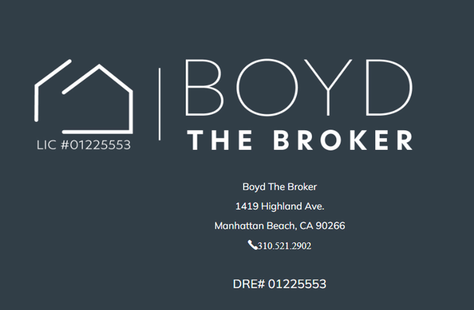 "Boyd The Broker is a premier Manhattan Beach, CA real estate agent. Boyd also specializes in the real estate areas of Hermosa Beach, Redondo Beach, Torrance, Rancho Palos Verdes, and Palos Verdes Estates. With over 200 million in sales, Boyd has personally experienced these market up and downs. He has tracked these volatile markets and has significant market data to help him understand current trends that he is happy to share with you. Contact him today to experience his top-notch services!"